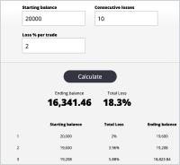 Precise forex drawdown calculator to help you calculate accurately how your trading account equity can be affected after a series of losing trades.